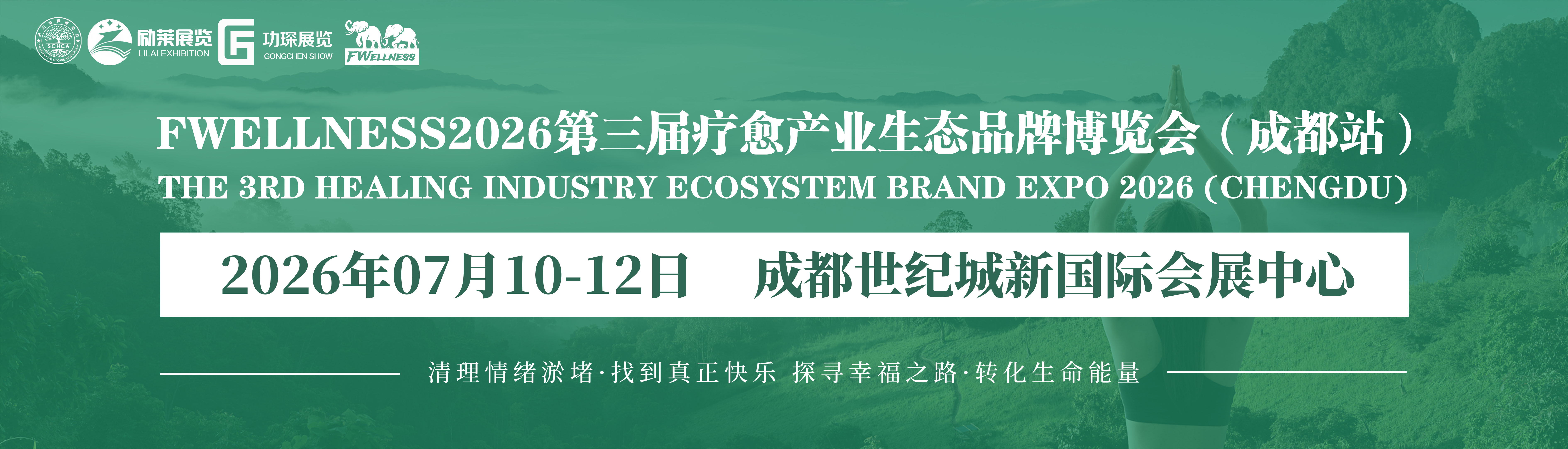 疗愈经济作为重构健康消费的催化剂,在全球范围内迅速兴起,引领健康消费新趋势。疗愈经济是以促进身心健康为目的的跨产业融合,包括心理自洽、健康养生、休闲旅游、文旅体育、文化输出等多个领域。据全球健康研究所报告预测,全球疗愈经济将以每年约10%的速度增长,到心理咨询到芳香疗愈,从颂钵音疗到冥想引导,从禅修、旅修到 A! 情感陪2025年,市场规模将达到7万亿美元,足以重构城市健康消费新名片。伴,从宠物到银龄,各式各样针对“情绪”和“精神”的疗愈类服务和压产品如雨后春笋般不断涌现,疗愈经济正爆发式兴起,直观折射出社会文化和健康消费的时代变革, FWellness2026第三届疗愈产业生态品牌博览会(成都站)即将聚势启航!立足全球化发展,聚焦华南疗愈产业生态构建,帮助企业把握发展机遇。汇聚国内外100+权威疗愈泰斗,300+行业领军企业巅峰对话,打造可持续高质量发展"顶层智库+生态展览+商贸直通"三位一体的疗愈产业高地。首创精准供需对接平台,全产业链招商护航。同时设置沉浸式疗愈场景体验区、亿元级B23合作窗口,参展商享"精准客源引流十全域流量裂变十产业扶持指导十标杆品牌联营"四维裂变赋能。深度整合资源,助力品牌快速拓展市场,:现业绩增长新突破。 诚邀各界人士共襄盛举,共同开创疗愈产业发展的美好未来。